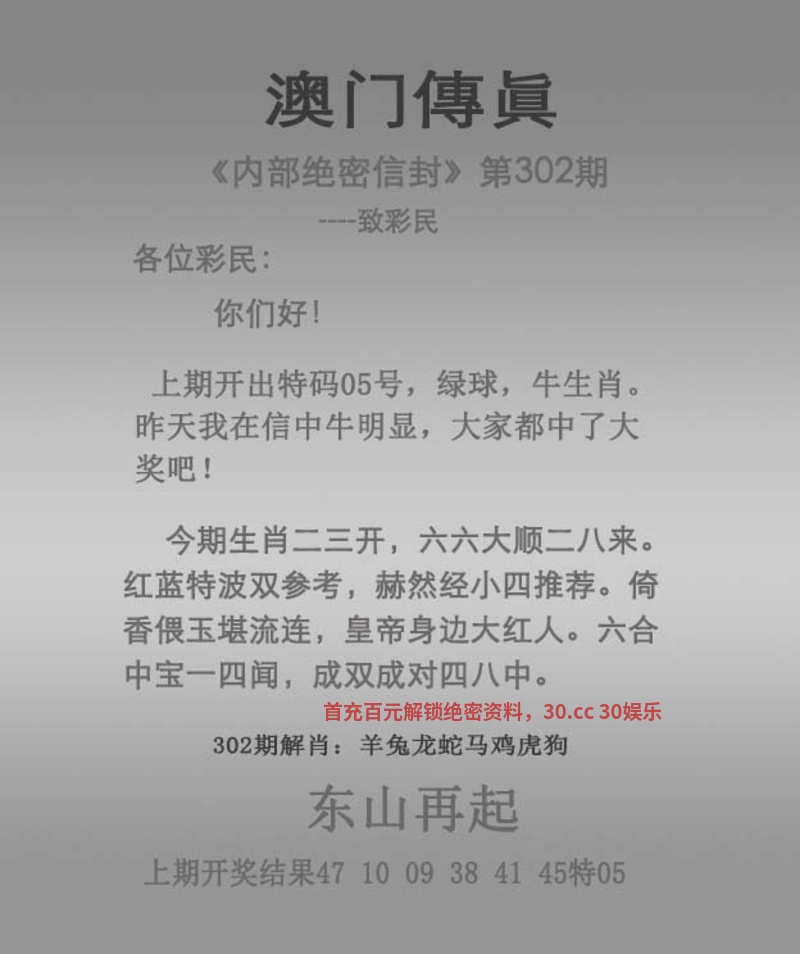 今期生肖一五开,三月阳春好风光。 大将赤龙救世人,满山红花几多少。 遇一牧童骑牛中,司晨报晓勤不懈。 鸡到天明自报晓,送君千里终顺别。 露水夫妻 |