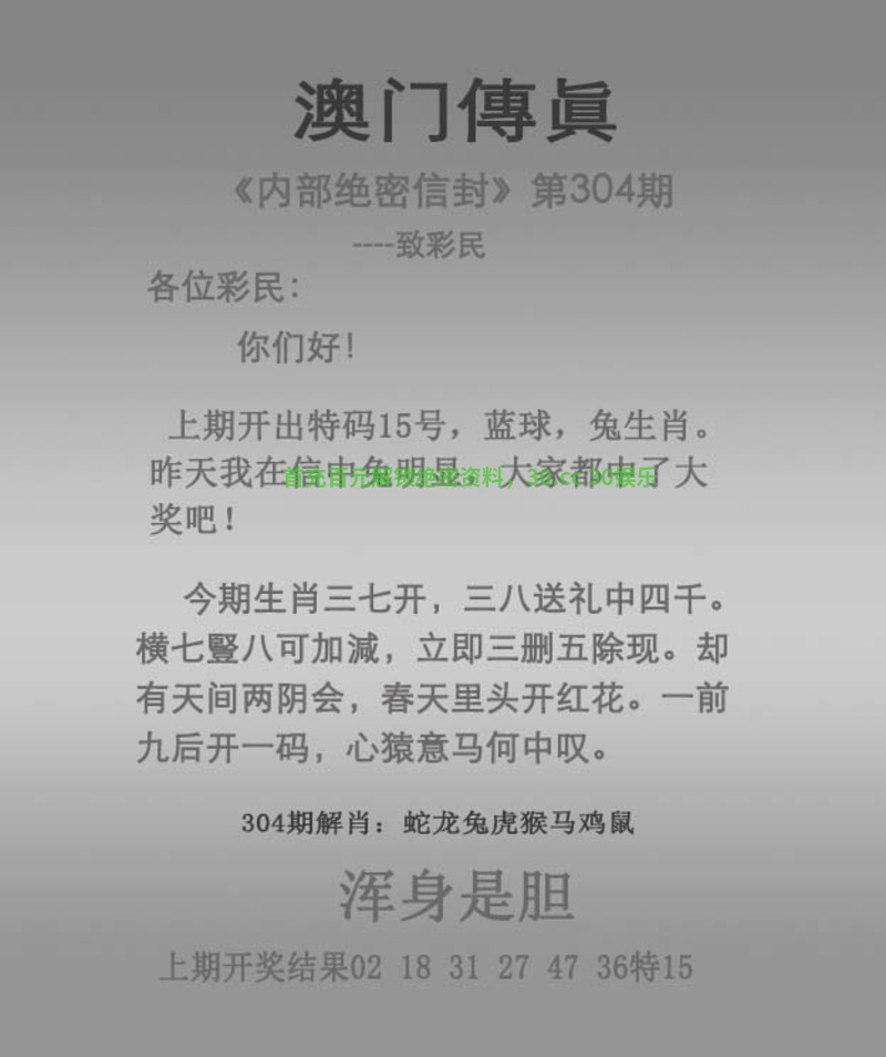 今期生肖三七开,三八送礼中四千。 横七豎八可加減,立即三删五除现。 却有天间两阴会,春天里头开红花。 一前九后开一码,心猿意马何中叹。 浑身是胆 |